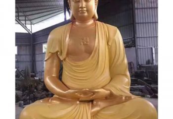 大型噴漆坐著蓮花上的三寶佛雕塑
