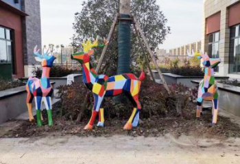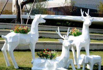 玻璃鋼雕刻仿梅花鹿雕塑,為池塘草坪添彩